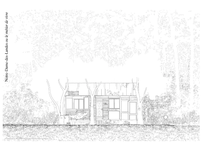 Partons de la ZAD et des modes d’habitations qui se sont progressivement mis en place là-bas. Regardons dans quelle mesure ces modes d’habitations sont capables de faire politique. Notre-Dame-des-Landes ou le métier de vivre est un ouvrage comportant des relevés architecturaux des cabanes de la ZAD, des textes et trois cahiers photos. Tous les dessins ont été réalisés par les étudiantes et étudiants du Master Alternative urbaine fondé à Vitry-sur-Seine en 2016. La ZAD est un lieu où s’expérimente des manières différentes de faire avec la terre. Sur ce territoire de plusieurs centaines d’hectares, les lieux d’habitation sont éparpillés et forment des constellations. Chacune d’entre elles dispose de lieux communs (comme une cuisine, un jardin et un atelier) autours desquels se développent des espaces plus privés comme les chambres (à l’instar d’une cabane dans un arbre ou d’une caravane). Cette modalité d’habitat permet l’expérience de la nature au sein de sa maison. Les champs et les haies sont les couloirs pour rejoindre les différents espaces de l’habitation. Une deuxième dimension remarquable de la ZAD réside dans la fragilité et la porosité des cabanes elles-mêmes. Même au sein de la cabane, vous ne disposez que d’une planche entre vous et le monde. Au sein de la constellation, il est possible de remarquer une première échelle des communs. La configuration de la ZAD rend possible l’accès à une chambre à soi. Cet élément semble décisif pour assurer la pérennité de la ZAD dans le temps car il est possible alors de se retirer dans un lieu privé et de venir dans le commun au moment choisi. Entre les constellations de la ZAD, une deuxième échelle des communs prend forme. Un certain nombre de lieux sont des espaces de collaboration de toute la ZAD. Là aussi, la participation est libre. Si ces deux échelles de commun s’emboitent, aucune ne vient annuler la dimension singulière qui continue d’exister à travers la trame commune de la ZAD.
