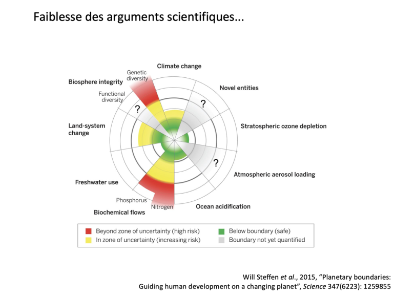 Comment ne plus progresser ? Une de ces réflexions a été développée par le monde scientifique, qui essaie de documenter les dommages des sociétés industrielles et la viabilité de leur trajectoire. Les limites planétaires font partie de ces constats, tout comme le rapport Limits to Growth du Club de Rome (1972). La science a documenté très clairement ce qui nous préoccupe en termes de crises écologique et sociale.