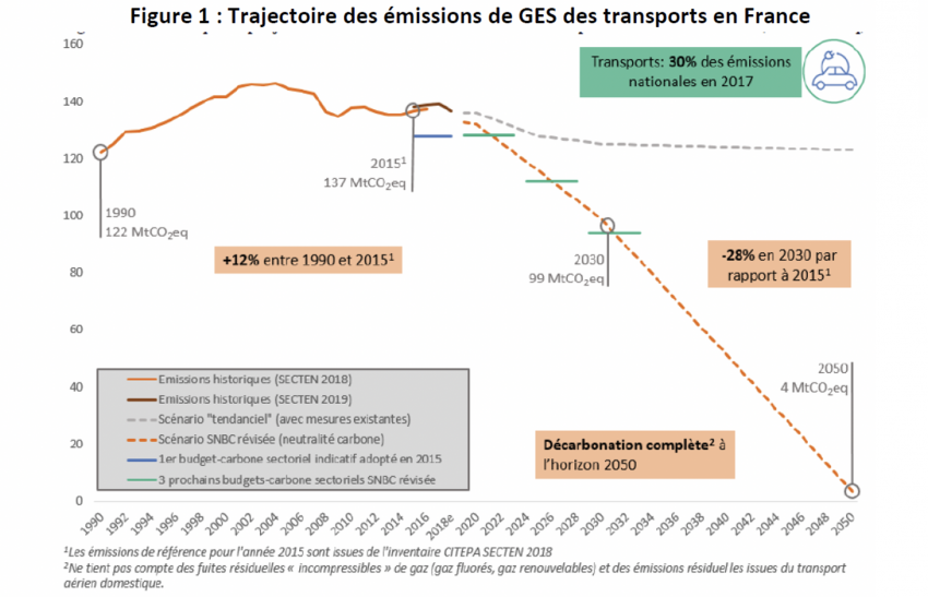 2, c’est-à-dire ceux effectués en voiture et en avion, en vue d’atteindre l’objectif de neutralité carbone en 2050 fixé par la Stratégie nationale bas carbone, selon des critères de justice sociale.
