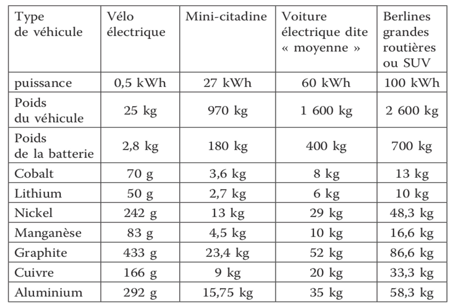 En 2018, l’Académie des sciences constatait que le programme de véhicules électriques français repose sur « des quantités de lithium et de cobalt très élevées, qui excèdent, en fait et à technologie inchangée, les productions mondiales d’aujourd’hui, et ce pour satisfaire le seul besoin français ! » En clair : si on ne renonce pas à la voiture personnelle, alors il faudra, pour disposer d’une flotte tout électrique rien qu’en France, plus de cobalt et de lithium que l’on en produit actuellement dans le monde en une année.